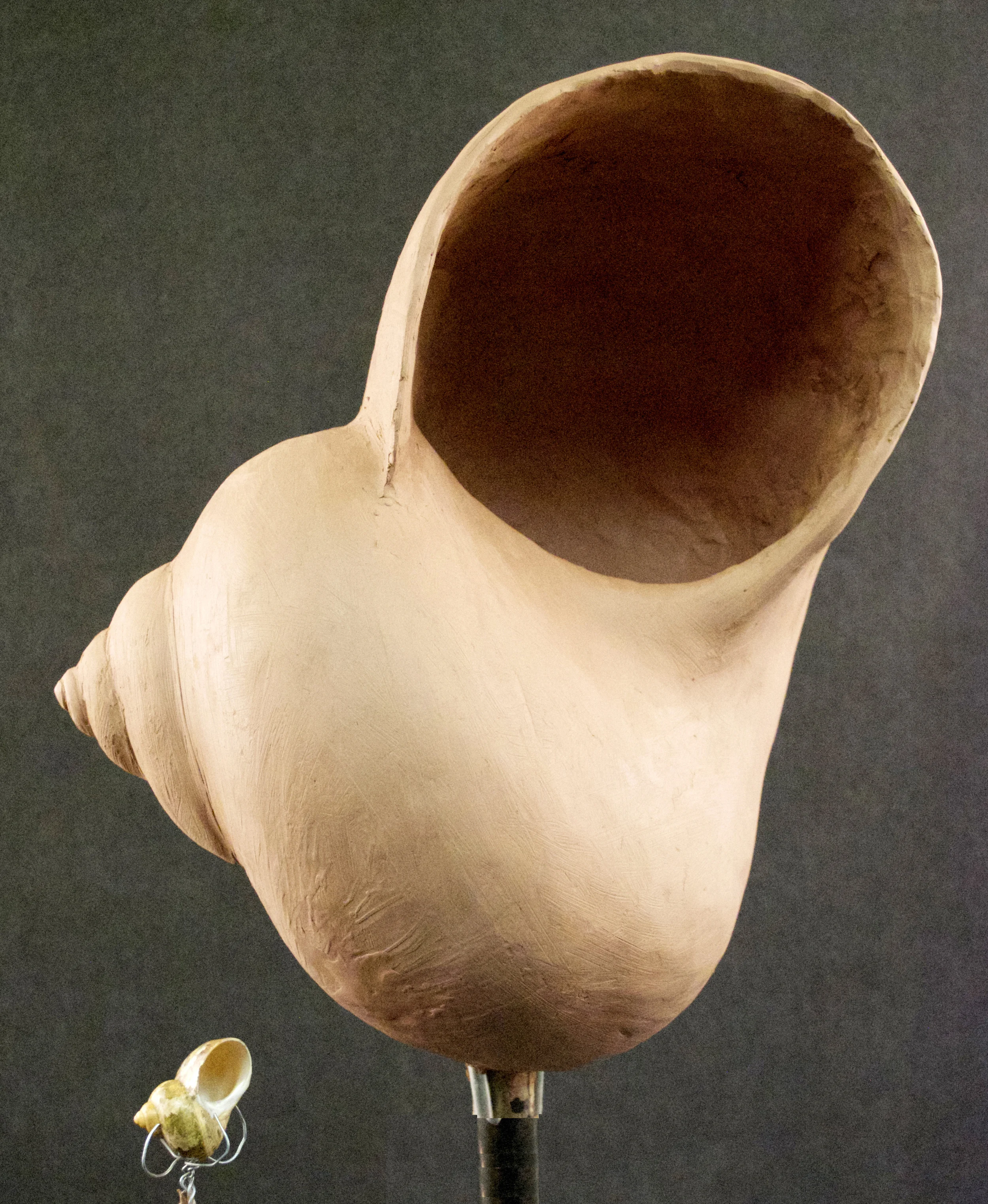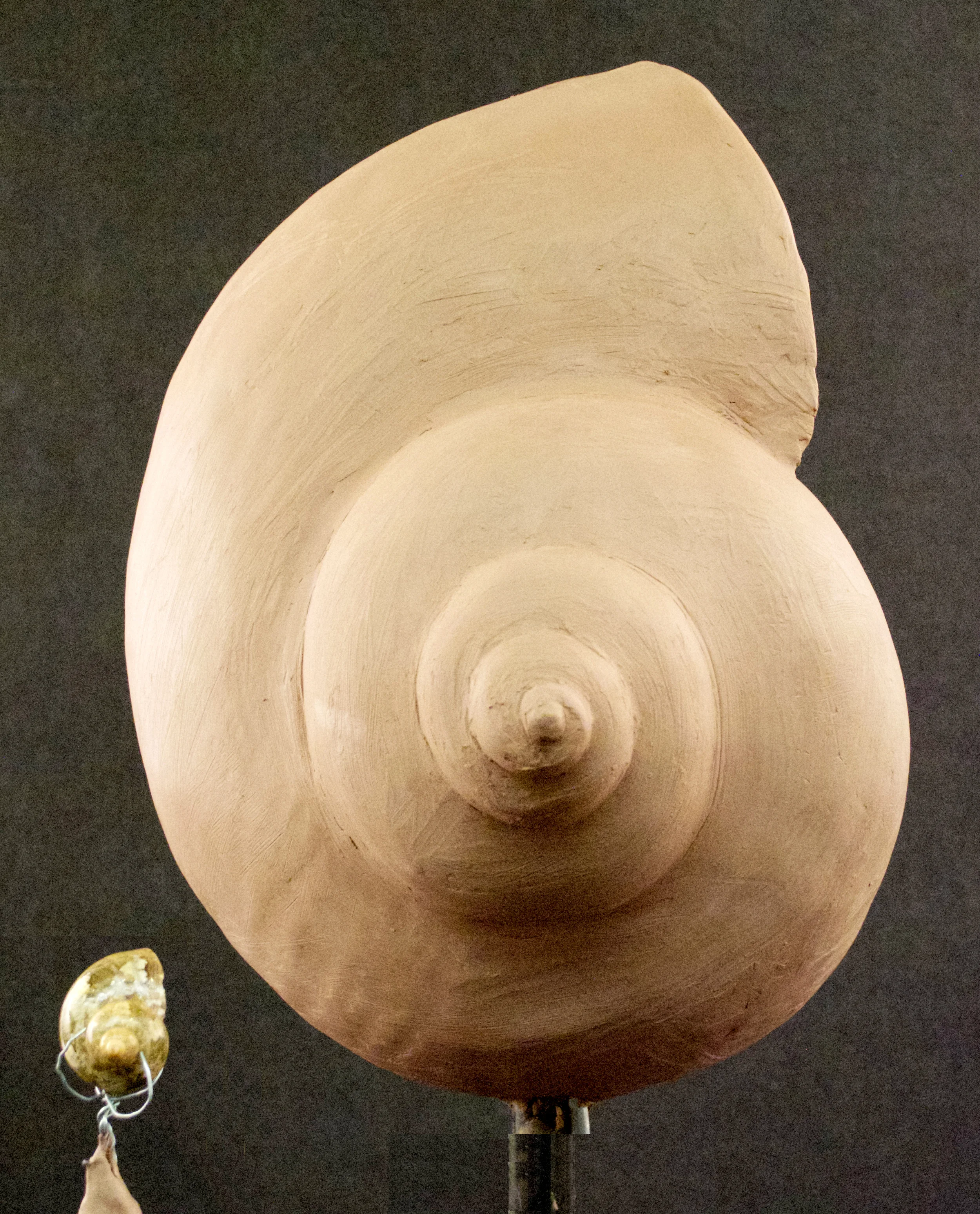 Sculpture created from a natural form of a shell. A long process that started with projection drawings, sculpting, mold making and casting. The goal was to observe and maintain the integrity of the specimen.